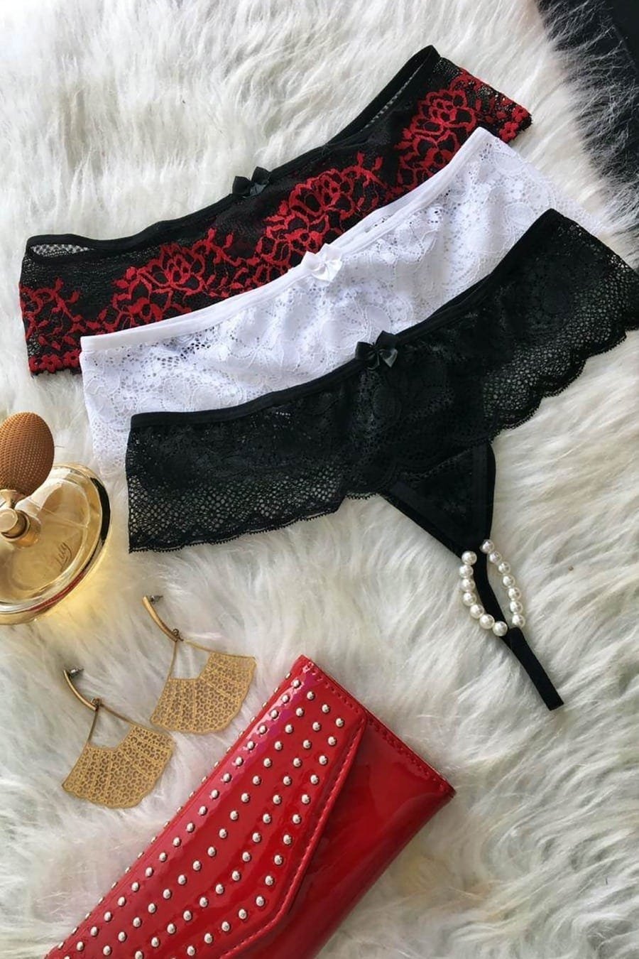Calcinha Tailandesa Com Pérolas de Renda toda trabalhada.