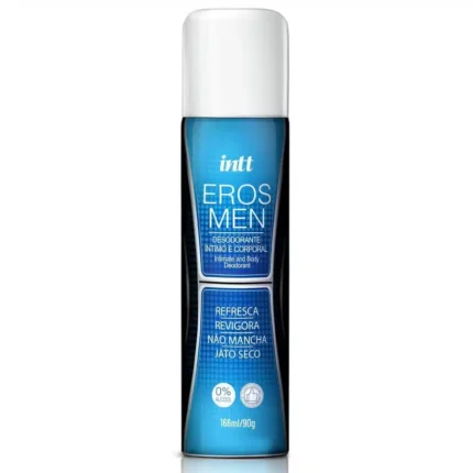Eros Desodorante Íntimo Jato Seco 166Ml Intt Menta desodorante íntimo e corporal, com o aromas altamente refrescantes. O Intt Eros pode ser aplicado em todo seu corpo e especialmente na região íntima, higienizando a região e mantendo o frescor. No momento da relação sexual, o cheiro característico da excitação se mistura ao delicioso perfume do Intt Eros, deixando o momento mais envolvente.