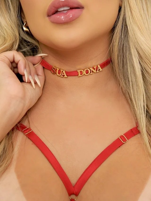 A cor vermelha é símbolo universal de paixão, poder e sedução. Quando associada a um acessório íntimo e ousado como uma gargantilha, ela se torna um verdadeiro ícone da sensualidade. E o toque final é a personalização exclusiva, que transforma o acessório em algo só seu — com uma palavra, nome ou frase que carrega desejo e significado.