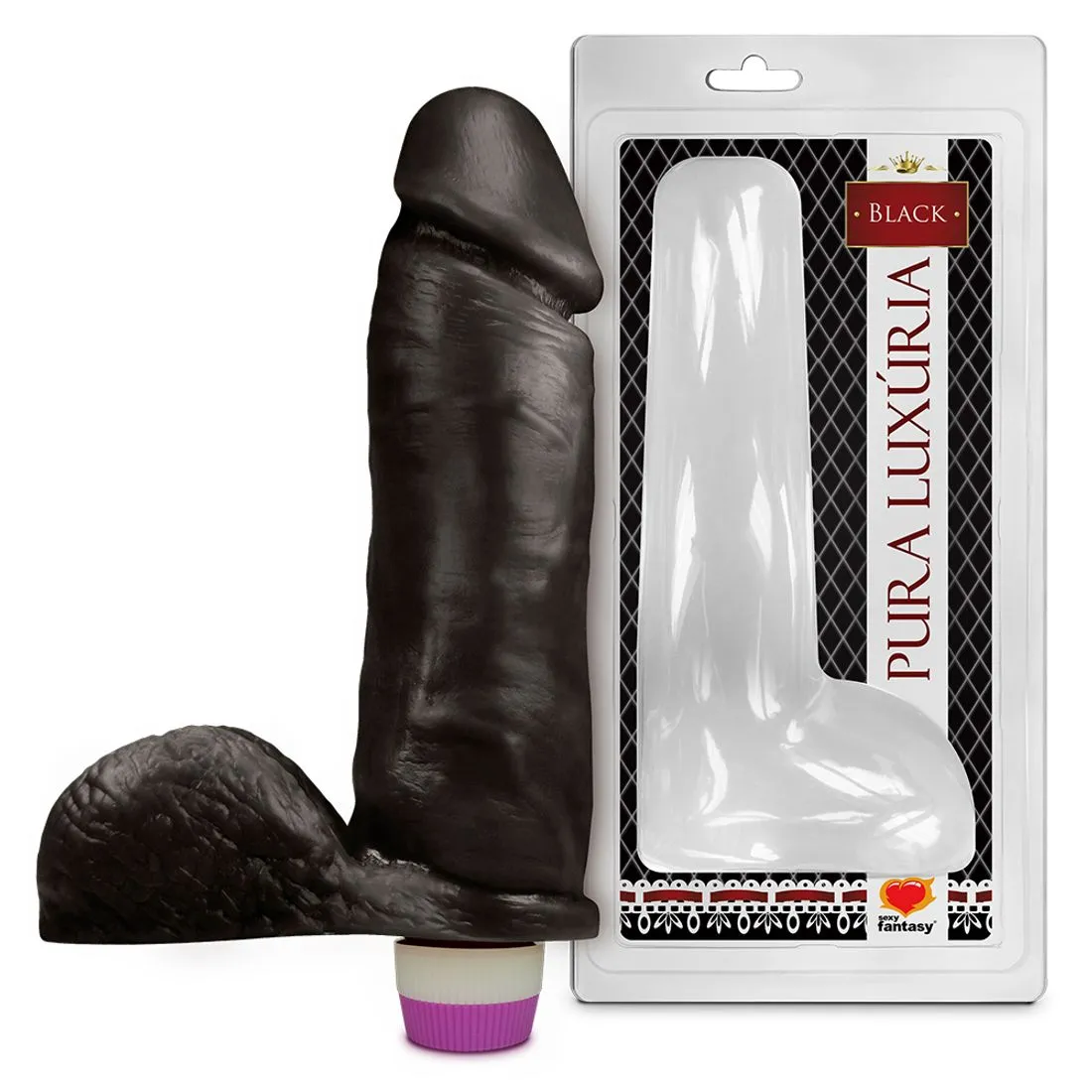 Prótese Pura Luxúria Realístico com Escroto e Vibro 20,5 x 4,7cm Sexy Fantasy