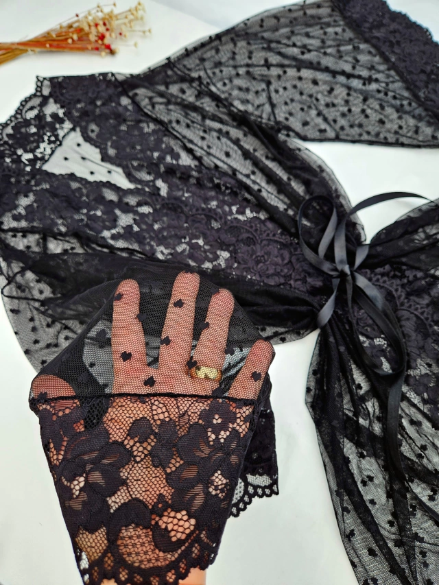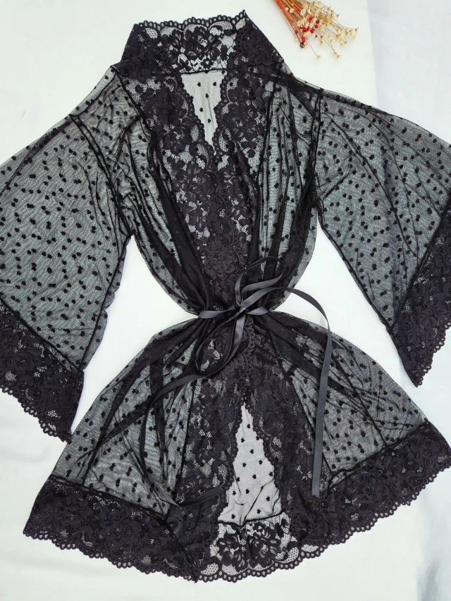 O Robe Preto de Tule com Manga Média é a escolha perfeita para quem deseja unir sofisticação e sensualidade com um toque de romantismo. Confeccionado em tule leve e transparente, ele oferece um caimento fluido e delicado, valorizando o corpo com suavidade e charme. Ideal para momentos especiais, esse robe é versátil, confortável e irresistivelmente elegante.