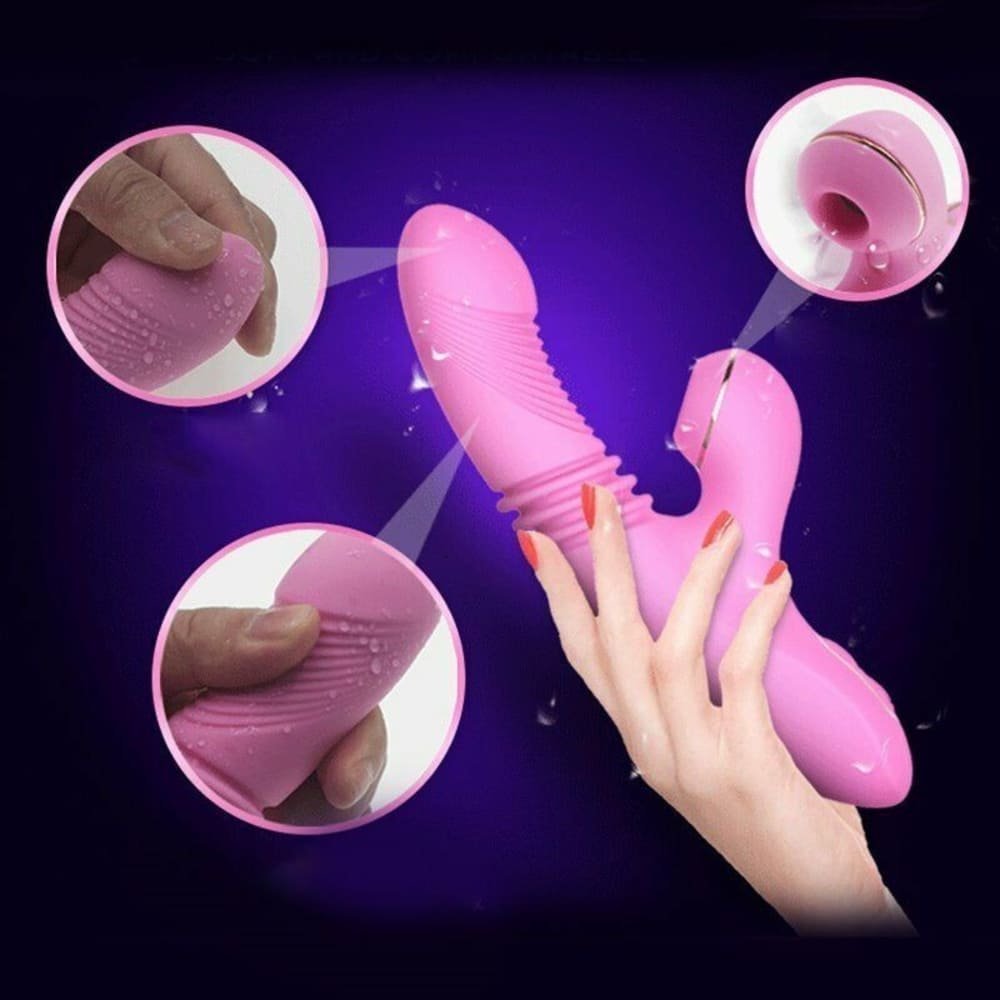 Vibrador Coelho Ponto G com Aquecimento e Sugador Clitóris thrusting sucção clitoral vibrador estimulador duplo motor à prova dwaterproof água adultos brinquedos sexuais