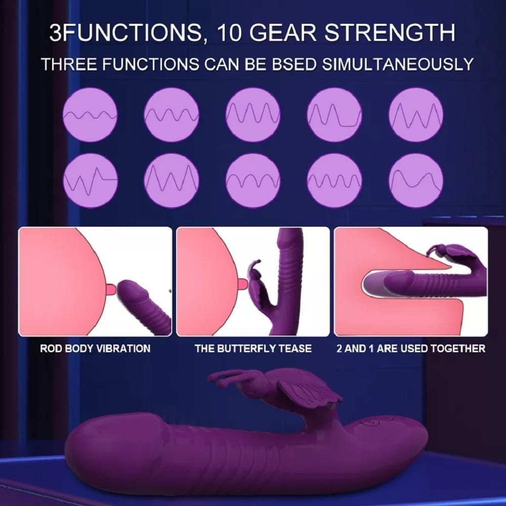 Vibrador Vai e Vem Borboleta Recarregável Roxo este vibrador pode estimular o seu clitóris, mamilos, seios, ânus e todos os outros pontos sensíveis.